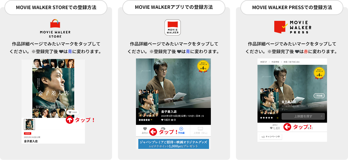 「みたい」登録方法