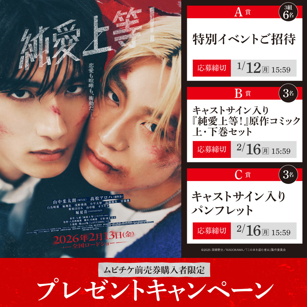 敵対する高校のトップを張るヤンキー2人の新感覚ラブストーリー『ノンケ上司、30日の開発メソッド』を代表作に持つ七緒による最新BLコミック『純愛上等!』の実写化でW主演を務めるのは、いま大注目の山中柔太朗と高松アロハ。熱いアクションシーンも織り交ぜられ、不器用ながらも衝動的で純粋な恋模様を真っ直ぐに描いたラブストーリーが誕生!